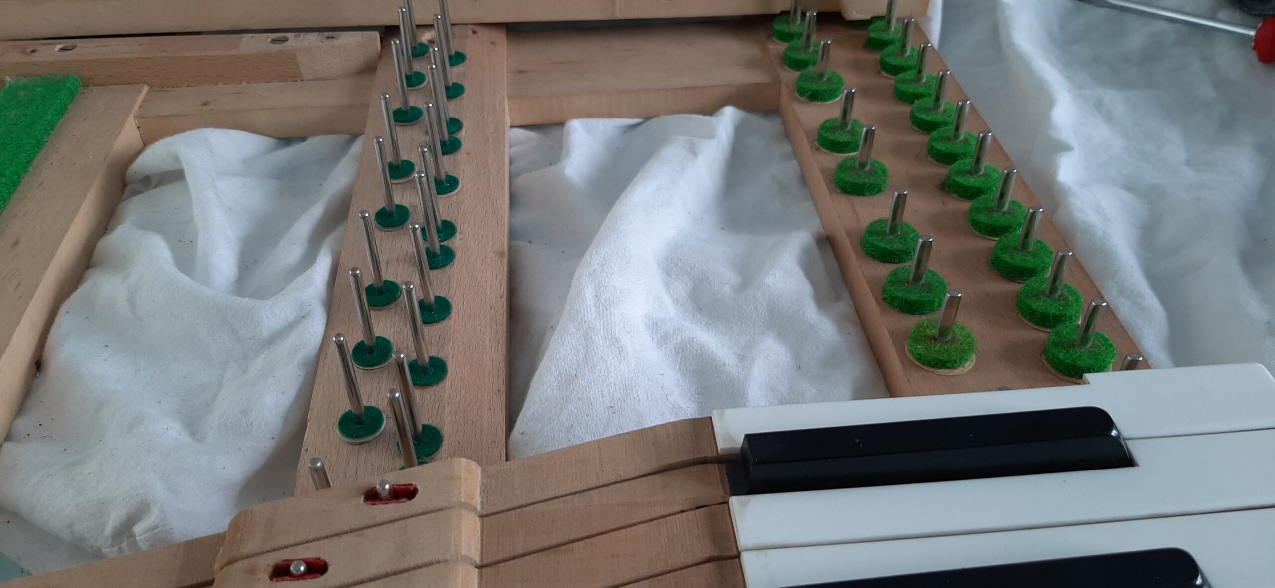 Het pianoklavier beweegt in vilt over metalen stiften. Het vervangen van dit vilt zorgt ervoor dat de piano of vleugel weer stabiel aanvoelt en de toetsen niet zwabberen. Ook onder het klavier komt nieuw vilt. Zo gaat iedere toets even diep.